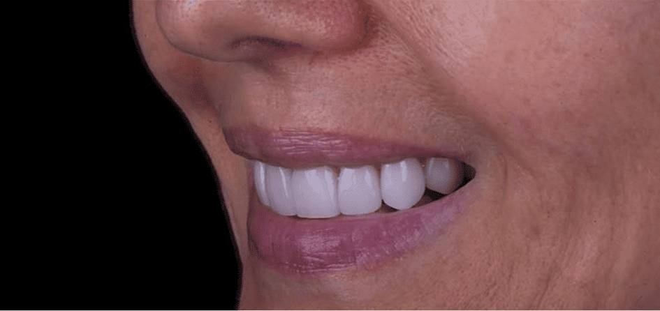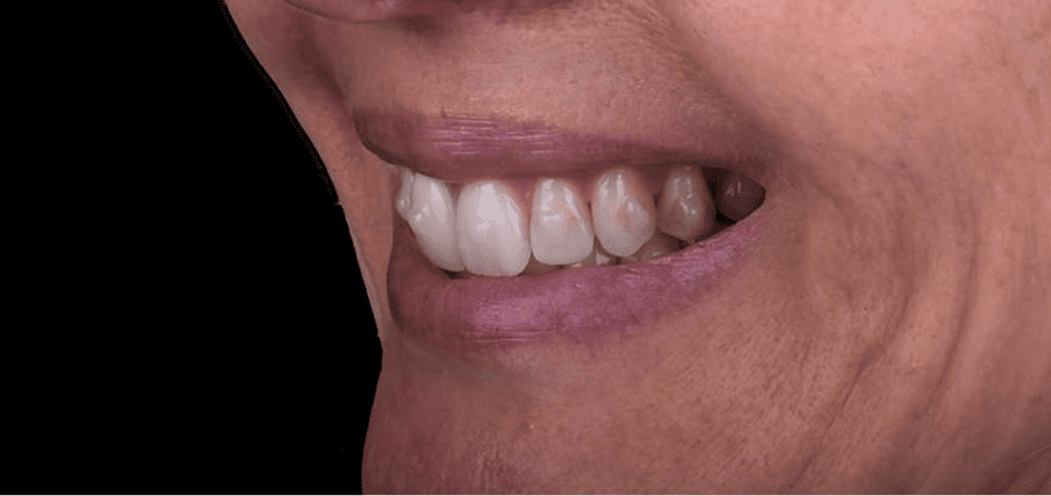 Задача: Устранение выраженной дисколорации (потемнения), стираемости зубов и старых, неэстетичных реставраций в боковых сегментах улыбки.